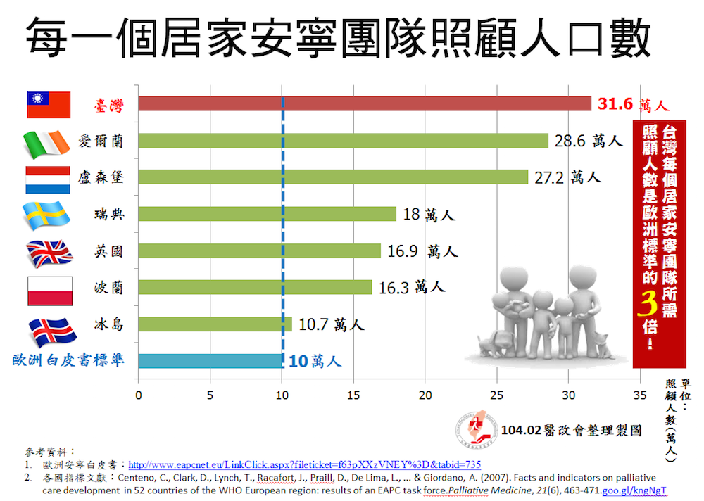 歐洲安寧白皮書(White Paper on standards and norms for hospice and palliative care in Europe)提供了安寧療護涵蓋準則,當歐洲各國都在朝這些指標邁進,衛福部還在宣揚臺灣為亞洲第一這項奇蹟……