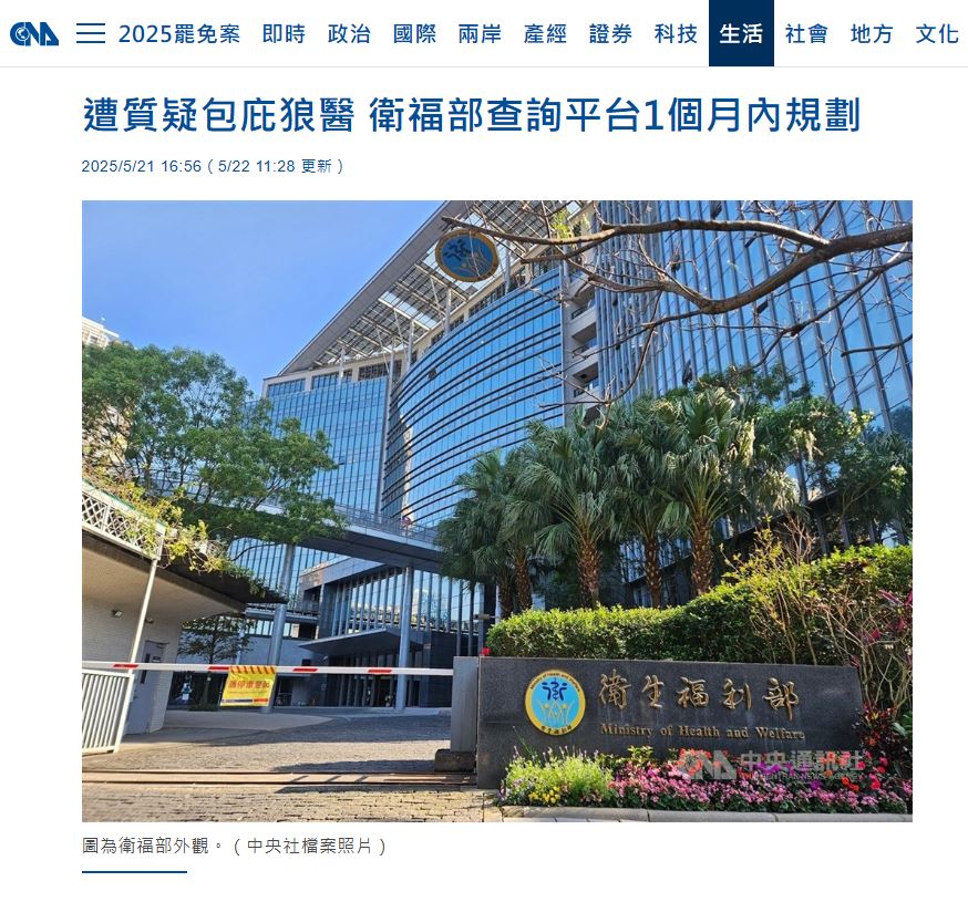 醫改會持續關注「狼醫查詢平台」的建置進度。邱泰源部長於今年1月曾公開承諾3個月內完成研議已跳票;經民間倡議與國會質詢多方壓力後,衛福部於5月21日再次承諾一個月內提出規劃。如今時間已到,卻依然看不到任何具體成果。民眾的就醫安全難道可以一再拖延?建立可近便查詢醫師不當紀錄的平台,是最基本的病人知情權與安全保障。